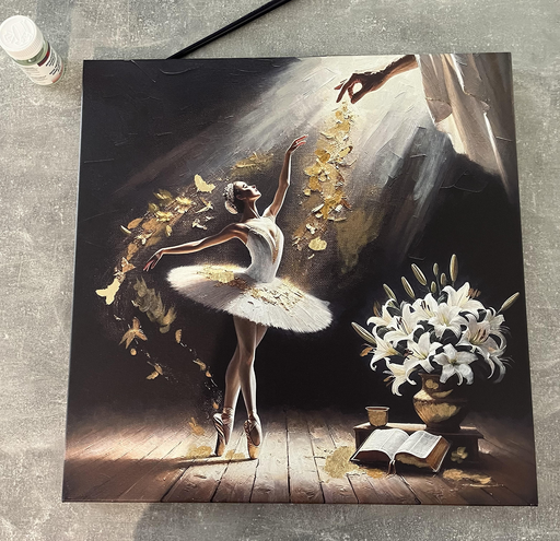 Dat is precies waar ik voor sta: aanwezig zijn in kleur, vorm en glans. Hier ontmoeten digitaal ontwerp en ambacht elkaar. Mijn kunst start digitaal, maar krijgt pas ziel door lagen acrylverf en/of goudfolie en een beschermende laklaag. Zo ontstaat werk dat uniek is, sprankelt en raakt.